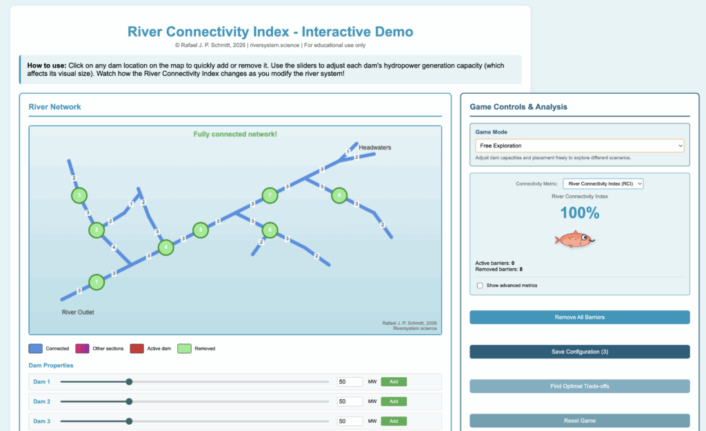 This interactive demo allows students and researchers to experiment with the impact of dams on river connectivity.